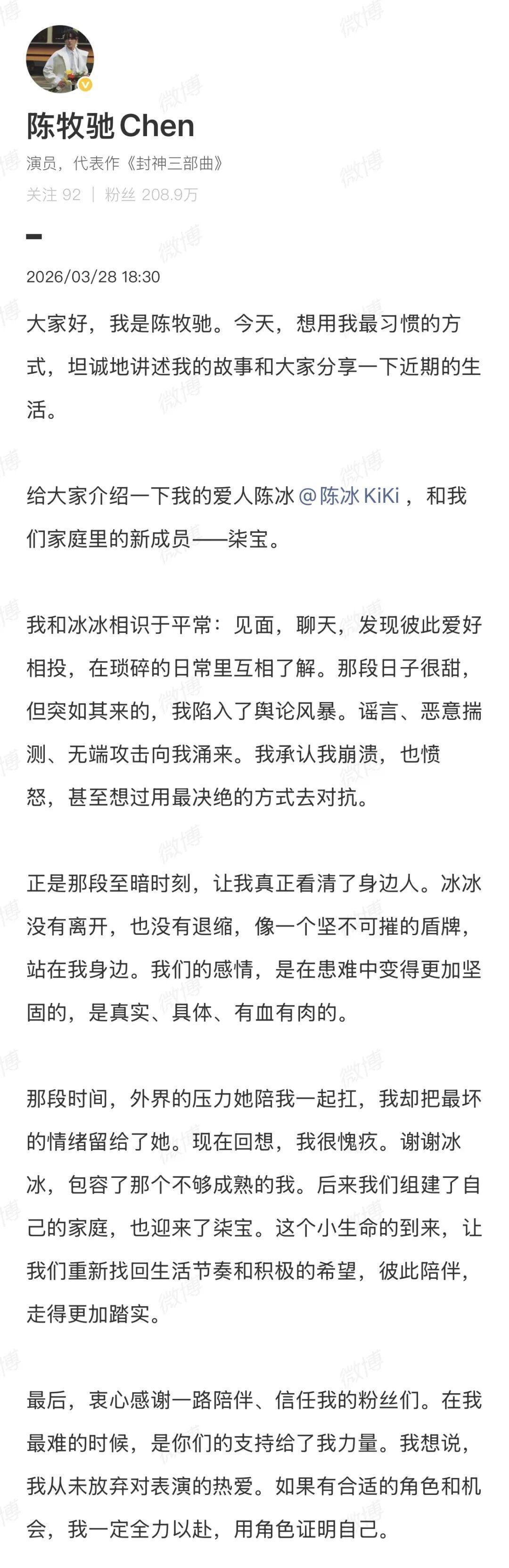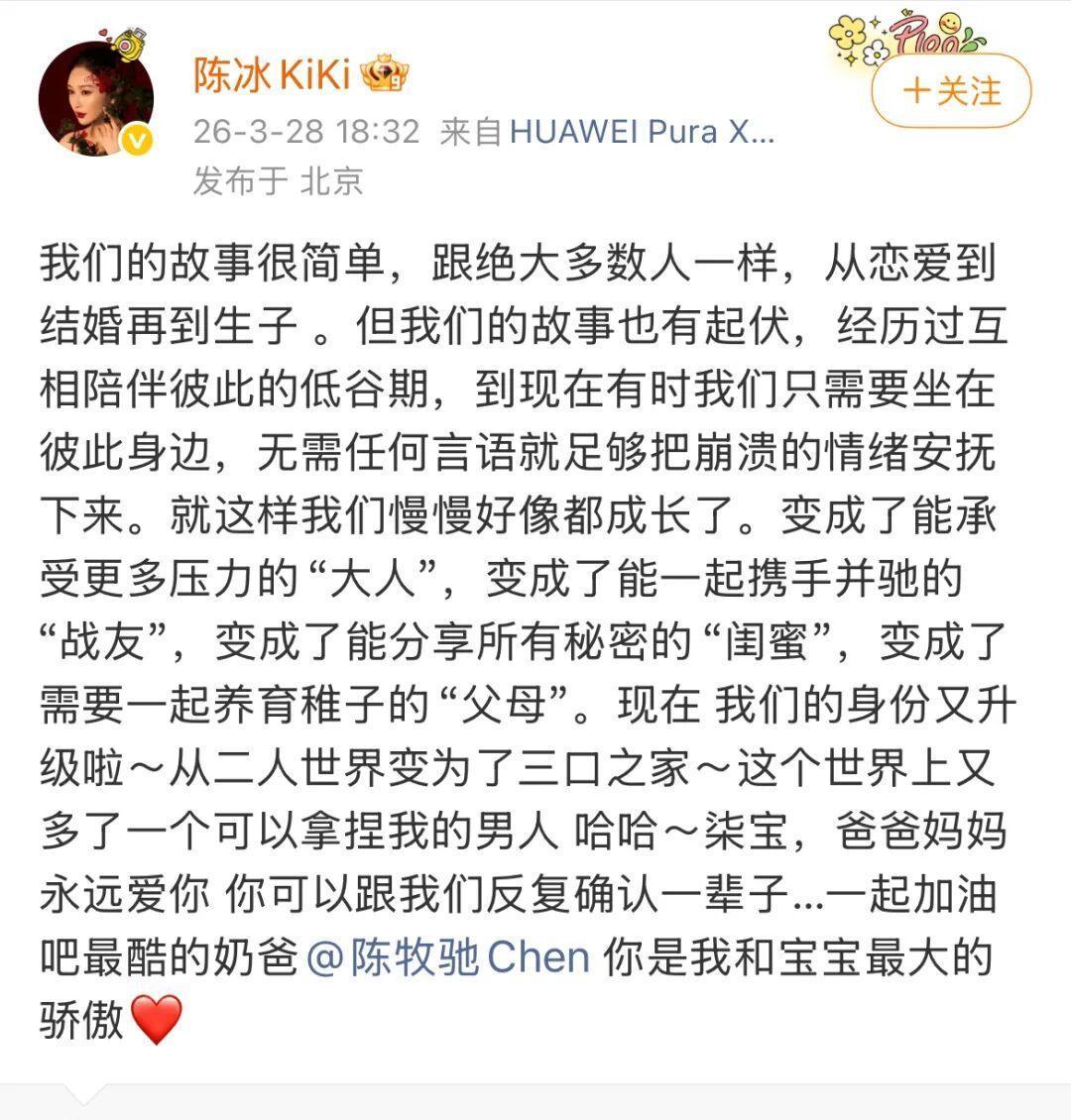 开云体育(中国)官方网站 藏得太深!陈牧驰陈冰官宣生子,一家三口大小手合影幸福极了!