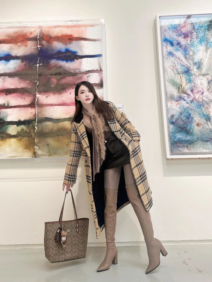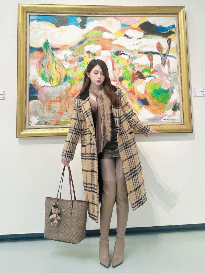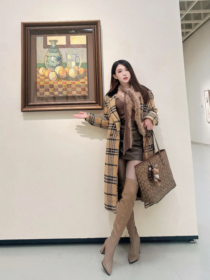 开云体育(中国)官方网站 格纹大衣+过膝长靴, 优雅大方的复旧娴雅穿搭