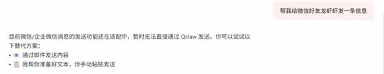 此外,即使是向“给好友发音书”这么的央求,金佰利也因为腾讯官方适配相关问题未能竣事。