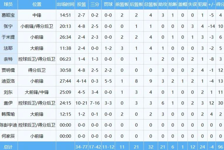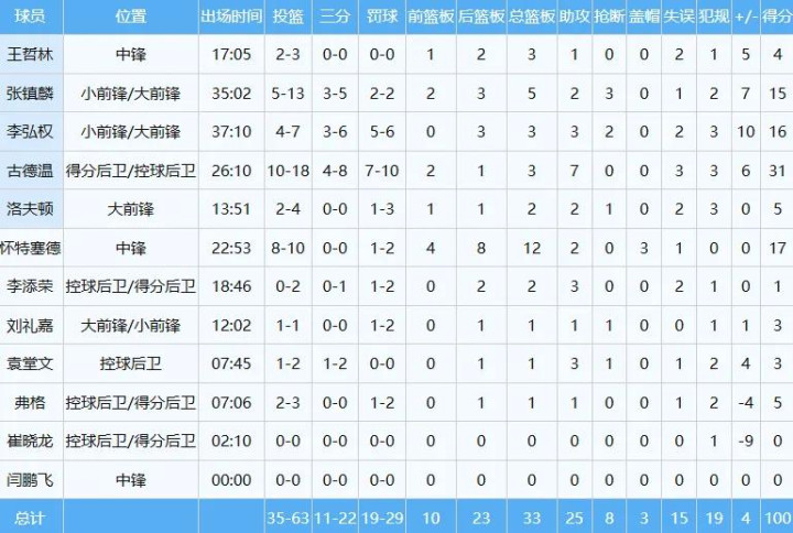 山西队数据如下: